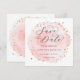 Esta tarjeta de guardar la fecha presenta un círculo de acuarela pintada en rosa con acentos de puntos dorados falsos. Para una personalización más avanzada de este diseño, haga clic en el botón "Personalizar". También están disponibles artículos coincidentes.