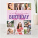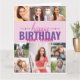 Tarjeta de cumpleaños personalizada para cualquier edad, en rosa y morado. La plantilla de fotos está lista para que añadas 8 de tus fotos favoritas y las personalizes con el nombre o la relación de la persona de cumpleaños, como mamá, abuela, hermana, etc. Dentro, la tarjeta dice "feliz cumpleaños" y también tienes la opción de añadir tu propio mensaje de personalizado. Este diseño tiene un fondo rosado con tipografía rosada y violeta.