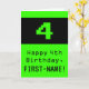La parte delantera de este diseño de tarjetas de felicitación con temática de cumpleaños geek y divertido cuenta con un gran estilo de juego de ordenador retro verde número "4". También incluye el mensaje de bienvenida de cumpleaños "Feliz cuarto cumpleaños", y un nombre que se puede personalizar. El interior presenta un mensaje de bienvenida de cumpleaños editable, o tal vez podría ser borrado y dejado en blanco si se va a escribir un mensaje a mano. Una tarjeta de cumpleaños personalizada como esta podría ser una manera divertida de reconocer el cuarto cumpleaños de alguien. [~Z0000430]