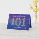 Tarjeta de cumpleaños 101 en azul. Puede editar o eliminar el texto que desee haciendo clic en "Personalizar esta plantilla". 101 en Estrellas - Número de Edad - Tarjeta de Ciento y Primer Cumpleaños - Fondo Azul - Texto de Personalizable. Tarjeta azul con diseño de números de estrellas - el número "101" creado con estrellas amarillas, rojas y blancas. Texto del personalizable: delante de la tarjeta: Feliz Cumpleaños y Añadir un Nombre. Personalizable de texto: tarjeta interior: "Deseándote un cumpleaños 101 muy feliz" y área de mensajes personalizados. Hay más colores y otras edades disponibles. Si tiene un requisito específico, por favor contáctame.