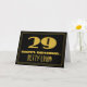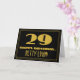 El frente de esta tarjeta de felicitación de cumpleaños con diseño inspirado en los locos años veinte y con aspecto vintage presenta un gran número con apariencia art déco "29", el mensaje "FELIZ CUMPLEAÑOS", un nombre editable y un patrón de borde que consiste en líneas. La parte delantera también tiene un fondo de color negro. El interior presenta un mensaje de felicitación de cumpleaños personalizable, o quizás podría estar en blanco si se desea escribir un mensaje a mano en su lugar. Una tarjeta de cumpleaños personalizable como esta podría ser una forma divertida de enviar un mensaje para celebrar el vigésimo noveno cumpleaños de alguien. [~Z0000506]