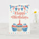 Tarjeta Cumpleaños 4 de Julio Cupcake Rojo Blanco Azul