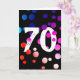 Patrón de puntos de arcoíris neón en fondo negro para cumpleaños 70. La edad se puede editar. El color del fondo negro se puede cambiar.