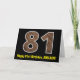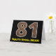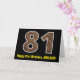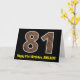 La parte delantera de este divertido y rústico diseño de tarjetas de felicitación temática de cumpleaños presenta un gran número "81" con un estilo inspirado en los granos de madera falsa, junto con el mensaje "Feliz cumpleaños 81", y un nombre personalizado. El interior presenta un mensaje de bienvenida de cumpleaños de personalizado, o tal vez podría ser borrado y dejado en blanco si se va a escribir un mensaje a mano. Una tarjeta de cumpleaños personalizada como esta podría ser una manera divertida de enviar un mensaje para celebrar el 80 primer cumpleaños de alguien. [~Z0000431]