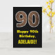 Esta divertida y rústica tarjeta de felicitación temática de cumpleaños presenta un gran número "90" que tiene un falso patrón de estilo inspirado en granos de madera en la parte delantera. En la parte delantera también aparece el mensaje de bienvenida de cumpleaños "Feliz cumpleaños 90", y un nombre de destinatario personalizado. El interior presenta un mensaje de bienvenida de cumpleaños editable, o tal vez podría ser borrado y dejado en blanco si se va a escribir un mensaje a mano. Una tarjeta de personalizable como esta puede ser una manera divertida de enviar deseos de cumpleaños a alguien que está celebrando su cumpleaños número noventa. [~Z0000433]