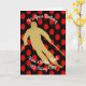 El foco principal del diseño es esquiador en la silueta de oro fijada contra un fondo de repetir los globos rojos en negro.