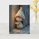 Tarjeta Cumpleaños Bashful Munchkin de pie junto a una pue