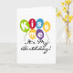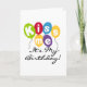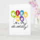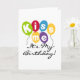 Globos coloridos y diseño de cumpleaños de texto negro que dice "¡Bésame es mi cumpleaños!" en tarjetas de cumpleaños, tazas, camisetas y otras prendas de vestir y artículos de regalo.