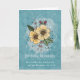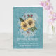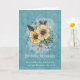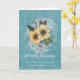 Tarjeta de cumpleaños con escritura en estilo garabato tiene flores de acuarela amarillas, hojas y bayas que salen fuera de un marco de diamante. El fondo es acuarela azul desordenada con salpicaduras y puntos. El versículo bíblico es un extracto de Números 6:24-26, El Señor te bendiga y te guarde: y te dé paz.