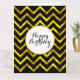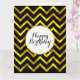 Tarjeta Cumpleaños brillo negro dorado chevron | En blanco