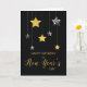 Cuando alguien está celebrando su cumpleaños el día del año nuevo, entonces esta es la carta que se adapta perfectamente a la ocasión. Las estrellas plateadas y doradas brillan en la parte delantera de esta. (El oro y la plata se crean digitalmente.)