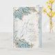 Con una hermosa tarjeta de cumpleaños religiosa floral azul con una cita de las Escrituras en la parte frontal de la tarjeta y un mensaje personalizable encantador en el interior.