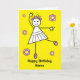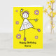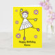 Dibujo animado lindo de una niña palito sonriendo y bailando ballet con zapatos de ballet rosados. Está rodeada de flores. La tarjeta tiene un fondo amarillo brillante, pero es fácil editarlo a un color diferente o un blanco minimalista agradable. Personaliza fácilmente esta tarjeta editando el texto del modelo en la parte frontal y posterior. Hermoso dibujo divertido para niños. ¡Gracias por ver mis diseños!