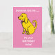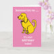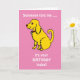 Tarjeta rosa con imagen tipo personalizado de un lindo perro feliz con las palabras 'Alguien me dijo... es tu cumpleaños hoy'. En el interior de la tarjeta se puede leer "Ten un cumpleaños encantador". Personalice fácilmente esta tarjeta editando el texto de la plantilla. Gracias por ver mis diseños.