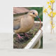 Una paloma de duelo con marcas distintivas sostiene un gusano en su pico mientras se extiende en el borde de una alcantarilla de la casa llena de tierra. Se puede cambiar el texto interior.