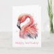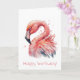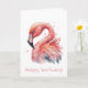 Tarjeta de cumpleaños de flamenco acuarela rosa