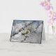 Delicadas flores flotantes de cerezo blanco se combinan con reflejos de estanques rimbombantes de cielo azul, ramas y nubes blancas para crear una tarjeta de cumpleaños con una interesante composición abstracta.