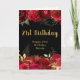 Tarjeta Cumpleaños de flores rojas y doradas elegantes