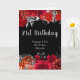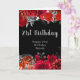Tarjeta Cumpleaños de flores rojas y plateadas elegantes