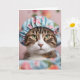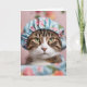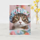 Tarjeta Cumpleaños de gato con gorra de ducha