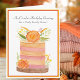 Esta tarta acuática de octubre, de cumpleaños, está adornada con tonos suaves y dorados cálidos, bellamente decorada con marigoles vibrantes, la flor del mes, junto con delicados acentos de dorados, vainas de scabiosa y verde vegetación fresca en un plato rústico de tartas de madera. Un bonito diseño para celebrar un día especial de la Hermana.