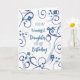 Tarjeta de cumpleaños para la hija con flores y remolinos azules bonitos y verso reflexivo.