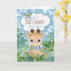 Tarjeta Cumpleaños de la jirafa de la selva azul del niño