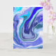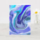 Tarjeta de cumpleaños de arte con líquido de mármol azul y blanco.