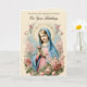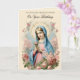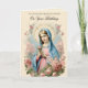 Con una hermosa imagen vintage de la Santísima Virgen María sosteniendo una rosa con flores antiguas alrededor de ella. Dentro hay un versículo de las escrituras con otro hermoso ramo floral. Todo el texto y las fuentes se pueden modificar.
