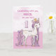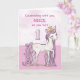 Un dulce pony rosa como su sobrina está bailando con el número uno! Los detalles dorados están tejidos en su crin y cola. ¡Tarjeta perfecta para desearle a su sobrina su 1er cumpleaños!