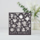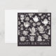 Envíe esta elegante carta a un amante del té en su cumpleaños. Con un encantador patrón retro de teteras y flores en blanco y negro, la elegante carta muestra un encanto y un estilo de inspiración vintage. 'Cumpleaños feliz' está al frente en letras mayúsculas, mientras que la carta es blanca al revés para tu propio mensaje.