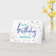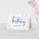 Hacer que los deseos de cumpleaños en el lugar de trabajo sean más personales con esta tarjeta de cumpleaños de negocios de personalizable. Con la palabra Cumpleaños en un audaz y moderno guión con Happy en un clásico tipo de letra serif, este diseño es elegante y profesional. Un nombre de personalizable a continuación añade un toque personal, lo que lo hace perfecto para empleados, clientes o asociados de negocios. Los confetti festivos con colores vibrantes flotan por encima y por debajo, creando un aspecto alegre pero refinado. Con un mensaje sencillo y cálido en el interior, esta tarjeta es una gran manera de celebrar los cumpleaños en el lugar de trabajo mientras muestra aprecio de una manera reflexiva.