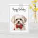 Tarjeta de cumpleaños de perro con pipa maltesa