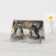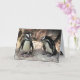 Esta tarjeta de cumpleaños incluye dos adorables pingüinos africanos en una cornisa rocosa. Son pájaros acuáticos y sin flores cuyas alas se han convertido en aletas. Cada uno tiene una franja negra y manchas negras en el pecho. El patrón de puntos es único para cada pingüino, al igual que las huellas dactilares humanas. Tienen glándulas rosas encima de sus ojos y pies rosados y negros. El texto puede ser personalizado para su ocasión especial.