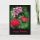 Esta tarjeta de cumpleaños incluye dos exquisitos rojos rosados en primer plano y un magnífico conjunto de lirios rojos, rosas y blancos con un perfume dulce a lo lejos. Los colores vivos se combinan con la vegetación estival. Hay más brotes de rosas dispersos por los lados. Personalizar el texto para adaptarlo a sus necesidades.