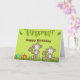 Una tarjeta de felicitación de cumpleaños con tema de selva. 2 monos marrones que se ven lindos kawaii y felices. Un banner de hojas de selva en la parte superior y algunas hierbas y flores en la parte inferior. Mensaje interno que puedes personalizar / cambiar si lo deseas. Todo el texto se puede editar o eliminar según tu situación.