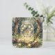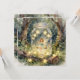 Una hermosa tarjeta de notas en blanco con tema de cuento de hadas. La encantadora ilustración muestra a una niña hada columpiándose en un columpio mágico dentro de un frasco de mason en un jardín encantado en el bosque. Luces de hadas adornan los árboles y el columpio.