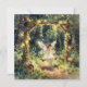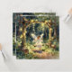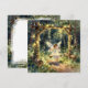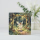 Una hermosa tarjeta de notas en blanco con tema de cuento de hadas. La encantadora ilustración muestra a una niña hada columpiándose en un columpio mágico en un jardín encantado en el bosque. Luces de hadas adornan los árboles y el columpio.