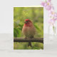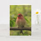 Esta tarjeta de cumpleaños tiene una hermosa finca morada sentada en lo alto de una rama, rodeada de hojas verdes. Tiene una cabeza roja brillante y un pecho rosa pálido. Su fuerte pico es perfecto para romper semillas. Es el ave que el famoso ornitólogo, Roger Tory Peterson, describió como "gorrión sumergido en jugo de frambuesa". Otro pequeño pájaro gordito está adentro. El texto puede ser personalizado para su ocasión especial.