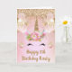 Tarjeta Cumpleaños de Rubor Pink & Gold Unicorn Face