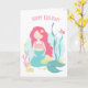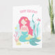 Tarjeta Cumpleaños de sirena linda rosa y menta para ni