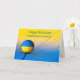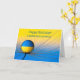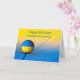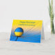 Tarjeta de cumpleaños ucraniana en azul y amarillo, bilingüe con inglés y ucraniano.