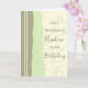 Tarjeta de cumpleaños para el sobrino con diseño moderno y sencillo de color verde y beige y verso reflexivo.