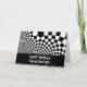 Los años 80 retros lindos y enrrollados deformaron diseño del tablero de damas en blanco y negro en una tarjeta de cumpleaños conveniente para un muchacho adolescente. El texto es adaptable.