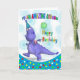 Un diseño único que es porciones de diversión, con un dragón púrpura feliz en el gorra del fiesta, sosteniendo su soda y globo, una gran tarjeta para el poco unas con las porciones de colores fabulosos, seguras de traer una sonrisa a cualquier cara