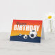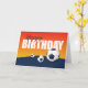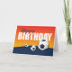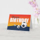 Tarjeta Cumpleaños del fútbol en atleta azul y Naranja
