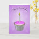 Dulce tarjeta de cumpleaños con un bizcocho de vainilla con heladas de fresa y rociadores azules para divertirse todo envuelto en un elegante envoltorio de Relieve metalizado. El texto interno es personalizable. Original © Marianne Gilliand 3d y 2d obras de arte digital. Pegatinas coincidentes disponibles.