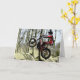Tarjeta de cumpleaños para los aficionados a los ensayos de motocicletas y sus competidores con una foto de acción poserizada de un motociclista que monta de rock a rock.