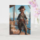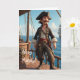 Esta divertida tarjeta de cumpleaños incluye a un pirata parado en la cubierta de un barco pirata.