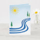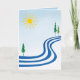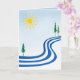 Esta tarjeta de cumpleaños presenta un diseño simple y abstracto. Flota a lo largo de un río perezoso con el sol amarillo brillante que baja de un hermoso cielo azul y árboles verdes de siempre verde a lo largo de las orillas. ¡Abre tu mente a los sueños! El texto simplemente dice: ¡Feliz cumpleaños! Se puede personalizar según tus necesidades.